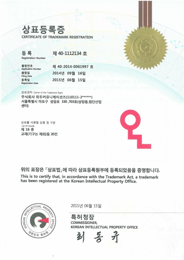 [Korea/Trademark] OLL 16 Class 페이지 정보 작성자 WeDu 댓글 0건 조회 6,573회 작성일 19-06-04 10:46 본문 2015-06-15 Trademark 40-1112134 16 Class List Previous[Korea/Trademark] OLL 09 Class 19.06.04 Next[Korea/Trademark] OLL 41 Class 19.06.04