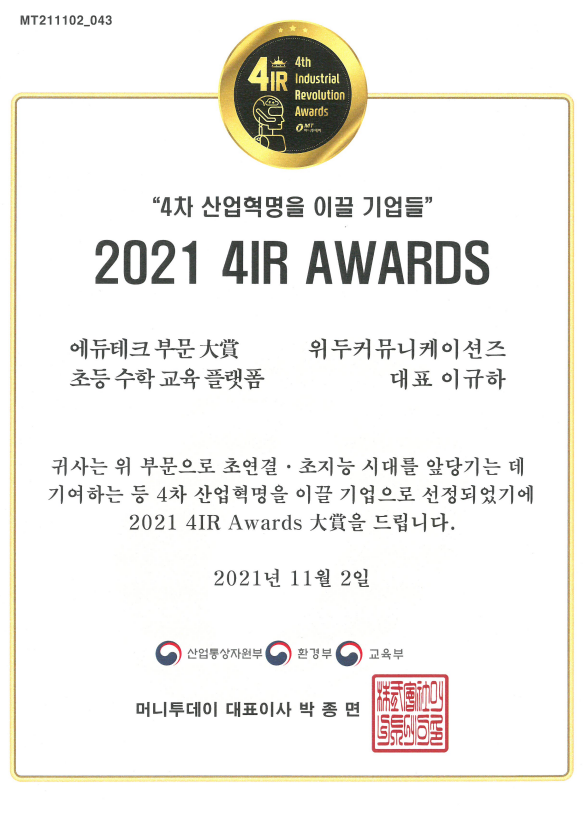 2021 4IR AWARDS 대상 페이지 정보 작성자 WeDu 댓글 0건 조회 11,339회 작성일 21-12-31 13:01 본문 2021-11-02 2021 4IR AWARDS 대상 머니투데이 List Previous2021 소년한국 우수 어린이 도서 22.01.06 Next2020 소년한국 우수 어린이 도서 선정 21.12.31